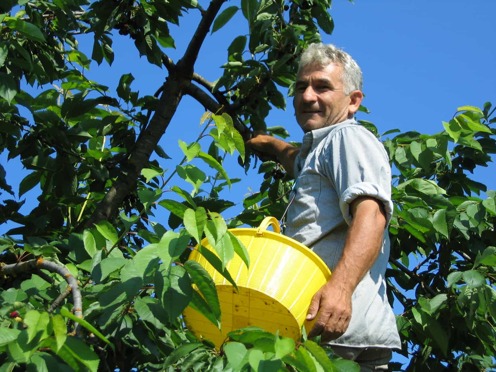 He returned this evening sweaty and dirty and just fell into the pool to cool off but having had a whale of a time and picked 350 kilos of cherries.