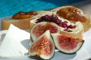 After a morning on my feet peeling grapes and stirring jam the result is an afternoon snack poolside that makes it worth the effort!